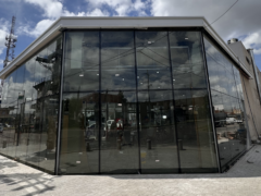 Colocación de piel de vidrio. Utilizamos este Sistema de Fachada Continua, ya que es ideal para superficies completamente vidriadas y continuas.